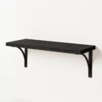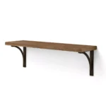 Estante de madera maciza al natural de 18mm de espesor, con dos ménsulas de hierro forjado industrial en color negro satinado.