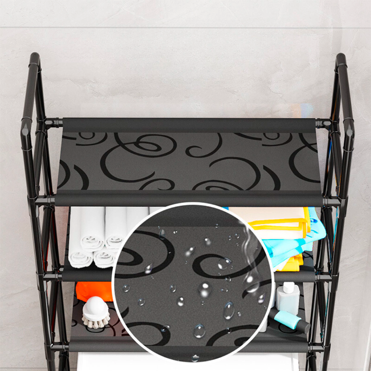 Su estructura resistente permite guardar detergentes, productos de limpieza, toallas, ropa o lo que necesites, manteniendo todo ordenado y al alcance de la mano.