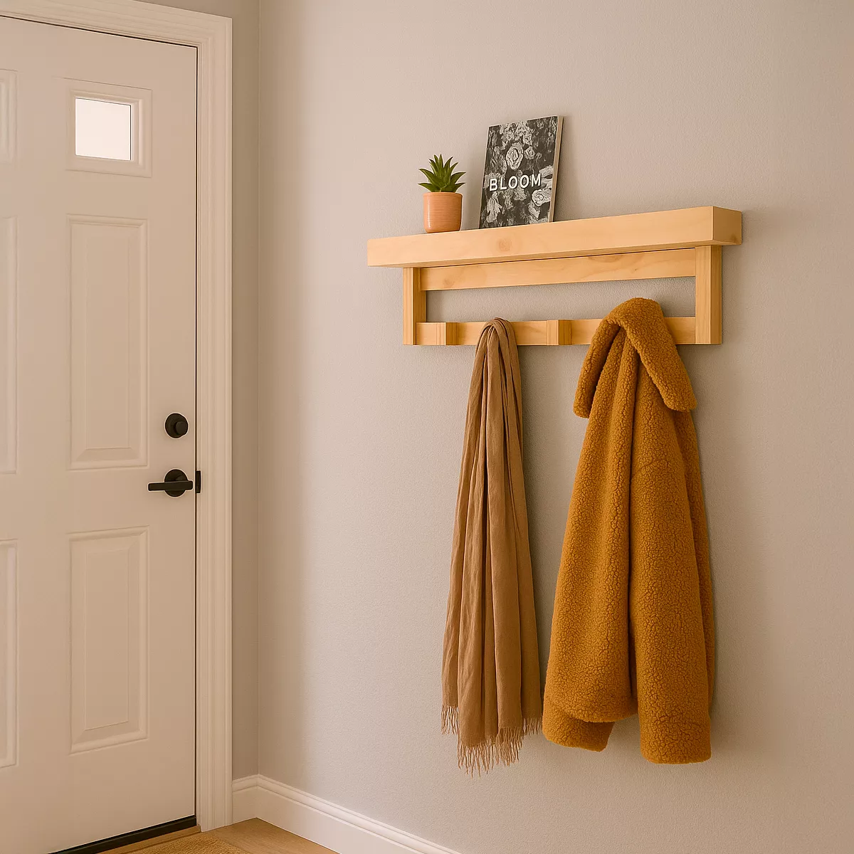 Perchero de pared con cuatro ganchos. Ideal para colgar tus llaves, llaveros, abrigos, sombreros, carteras. O para apoyar cuadros, libros o cualquier adorno que desee.